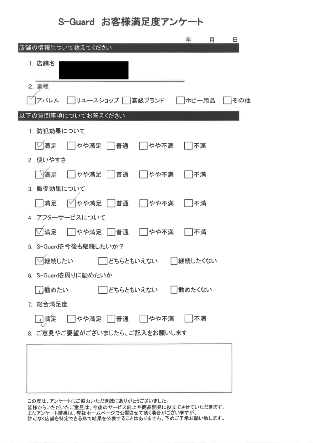 このように、アパレル店などのお客様にも高いご評価をいただいております。